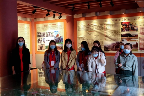 上午,实践团首先来到三元宫爱国主义教育基地,为全面了解红军长征过曲靖的历史,我们有幸邀请到纪念园讲解员邓艳梅为大家讲解。讲解员通过沙盘、图片、蜡像、革命旧物等形式给我们生动地讲述了1935年和1936年,红一、二方面军在长征途中先后两次经过曲靖,历时30天,行程2300多里,粉碎敌军的围追堵截,召开西山三元宫等重要会议,随即作出抢渡金沙江等重要战略部署。毛泽东、周恩来、朱德等老一辈无产阶级革命家都在曲靖这块红土地上留下了光辉的足迹。