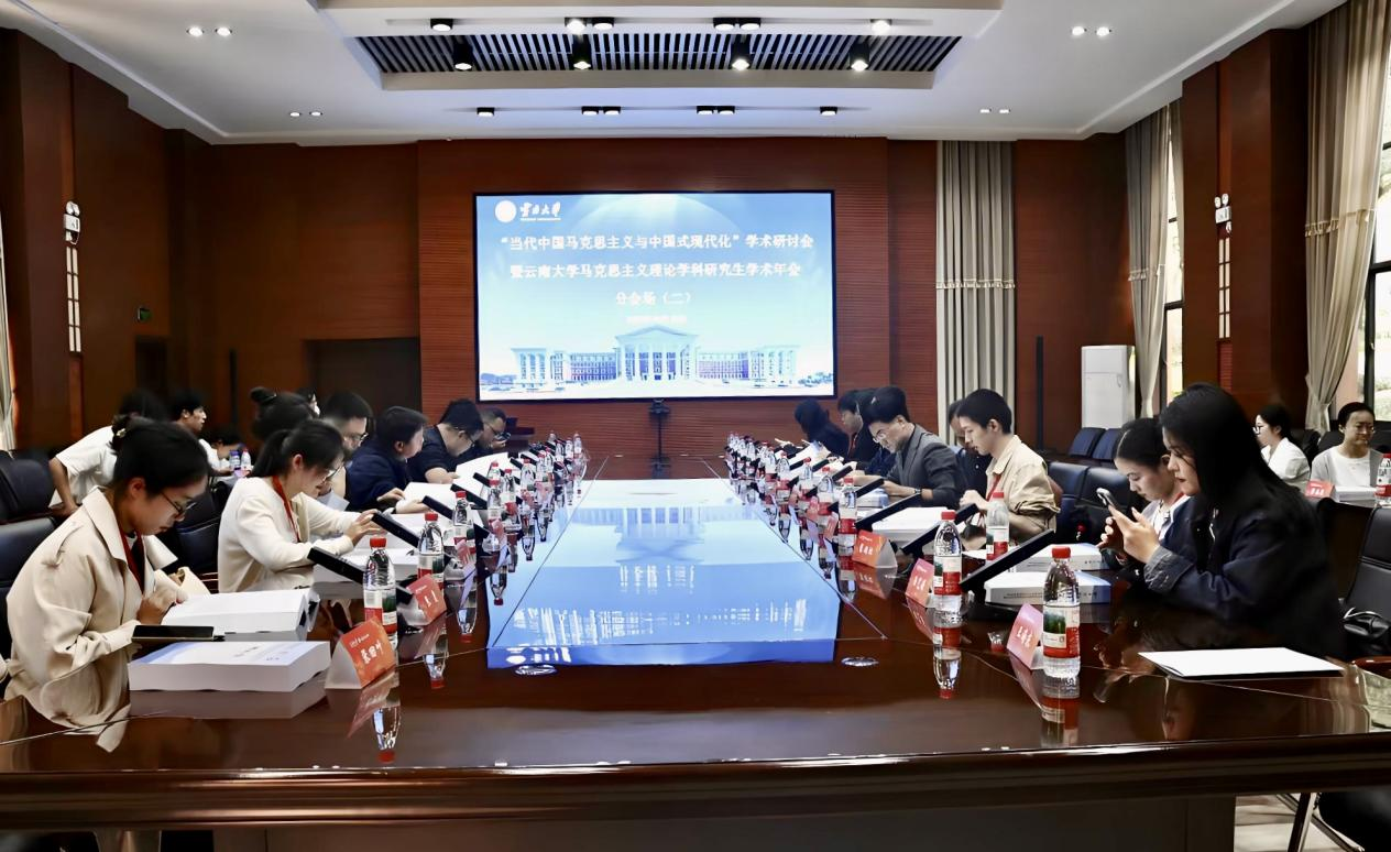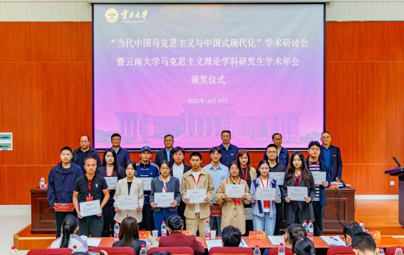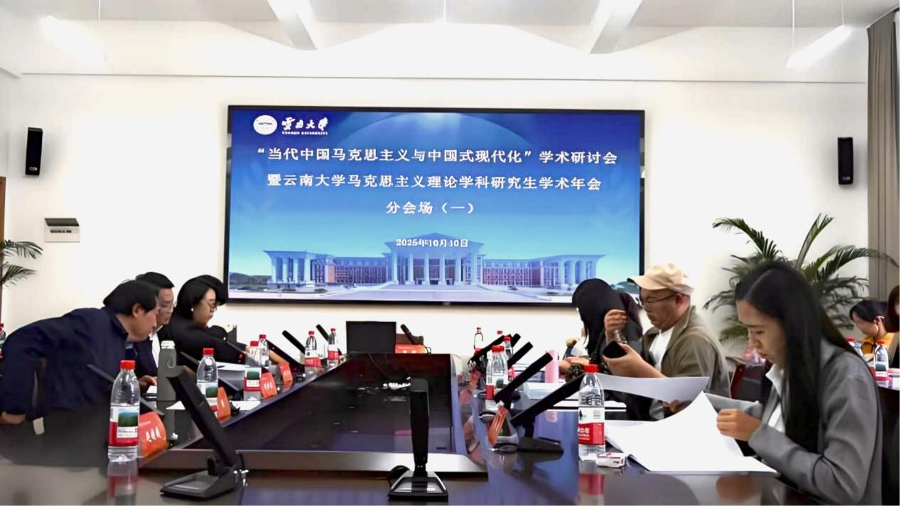 2025年10 月10 日,云南大学马克思主义学院主办的“当代中国马克思主义与中国式现代化”学术研讨会暨云南大学马克思主义理论学科研究生学术年会在云南大学呈贡校区顺利举行。来自全国28所高校、党校及科研院所的马克思主义理论及相关学科的23位专家学者和60余位学生代表参会。教育部长江学者特聘教授、中国人民大学吴玉章高级讲席教授郝立新、云南大学副校长、马克思主义学院院长吴涧、云南民族大学马克思主义学院院长王传发、云南大学研究生院副院长王熙,学院党政班子成员出席会议。