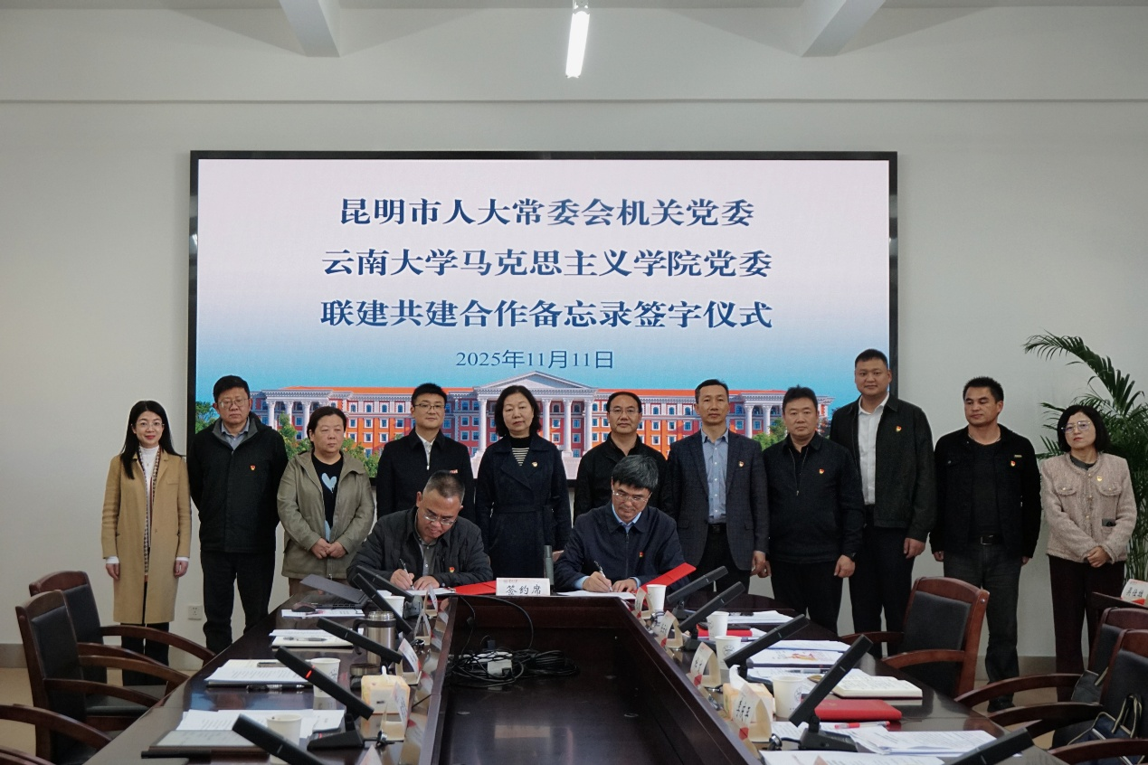 会上,昆明市人大常委会机关党委书记、副秘书长、办公室主任杜文和云南大学马克思主义学院副院长申斌分别介绍了各自单位的基本情况和工作特色,并在与会人员的共同见证下,共同签署联建共建合作备忘录。