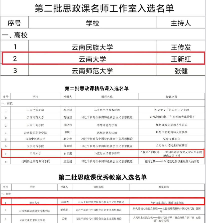 近日,中共云南省委教育工委公示了云南省大中小学思想政治教育一体化建设项目拟入选名单,我院三个项目获批立项。